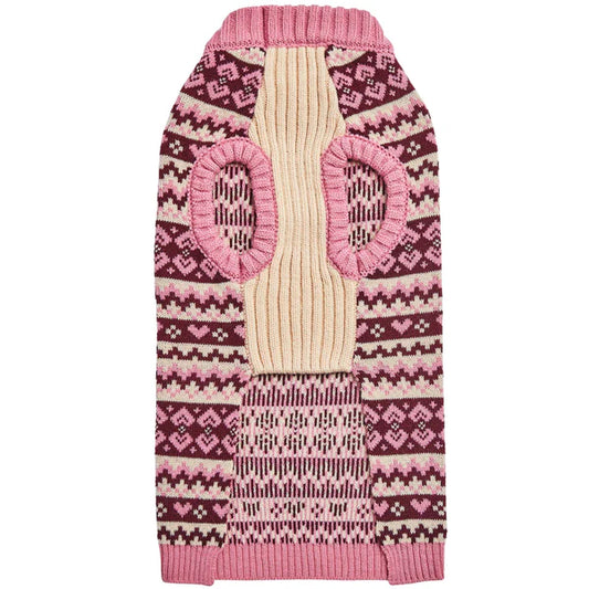 Blueberry Pet - Fair Isle Dog Sweater, Pink & Beige