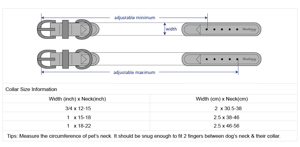 Blueberry Pet dog collar has both functionality and designer style. The sophisticated design combines high quality genuine leather outer and polyester webbing inner material offers comfort and durability.