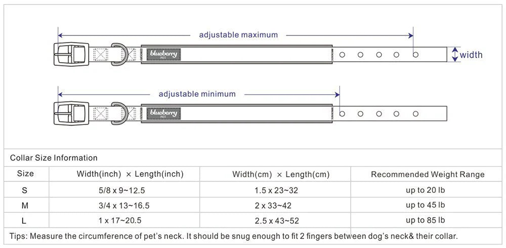 | Collar Size | Width (inch) | Neck (inch) | Pet Size |