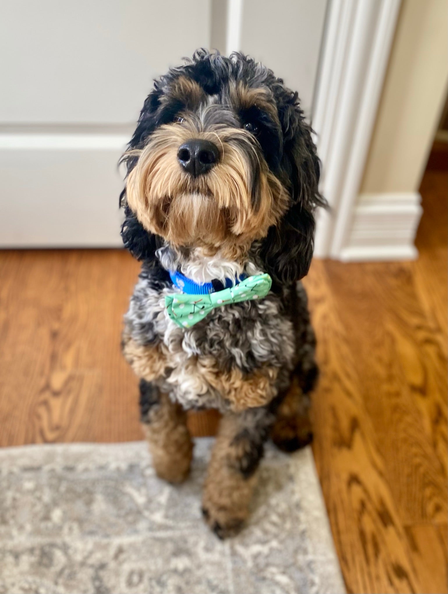 Fore.... your pup! Dress up your pet in this adorable golf ball and tee bow tie. Velcro backing makes it easy to place on any collar.